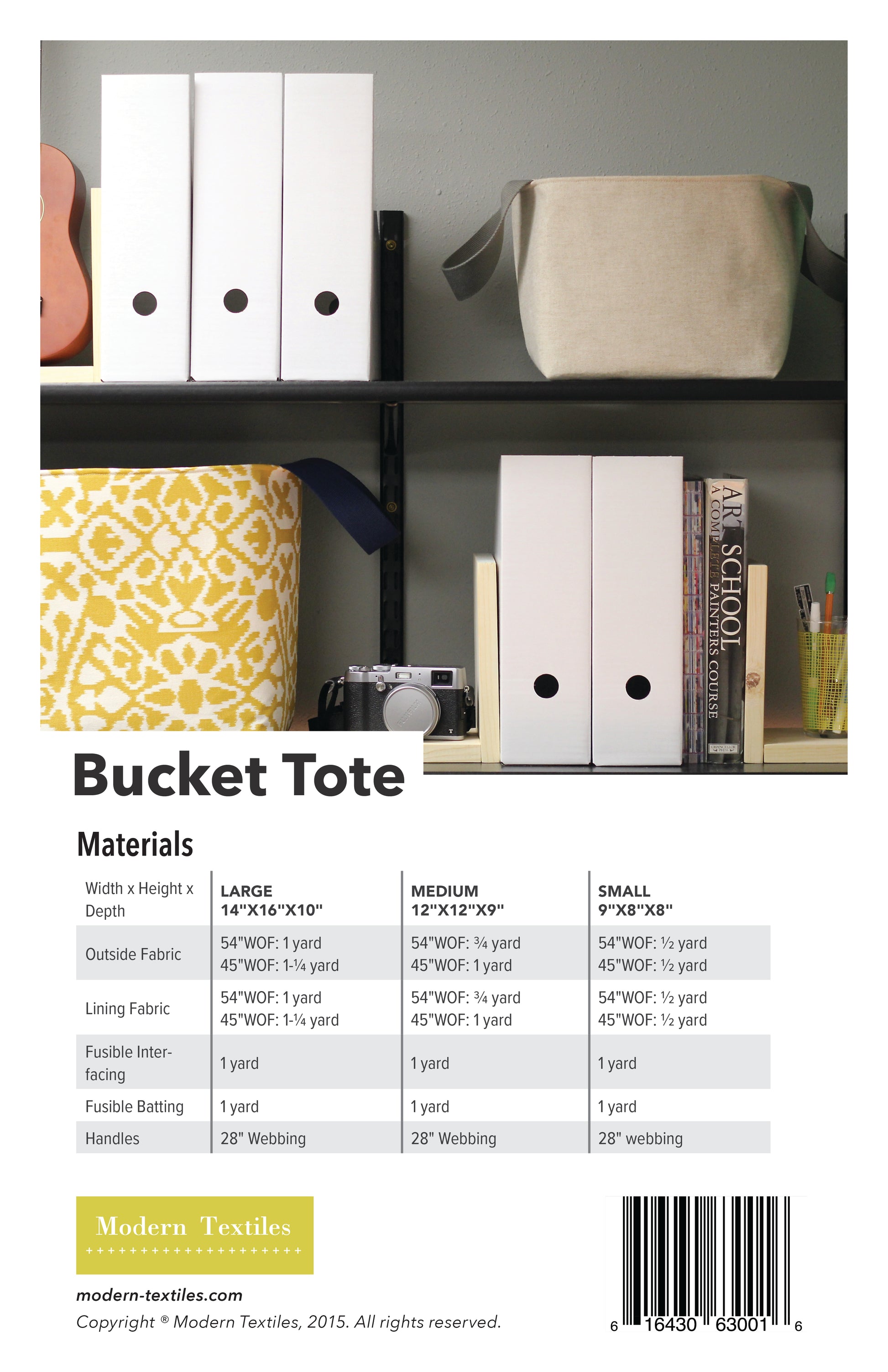 The Bucket Tote is a long time favorite at Modern Textiles! They are great for organizing just about anything and look beautiful while doing it. The Bucket Toe works best with Home Decor fabric on the outside and coordinating fabric on similar weight on the inside. Quilting Cotton can be used but will will result in less sturdy tote.