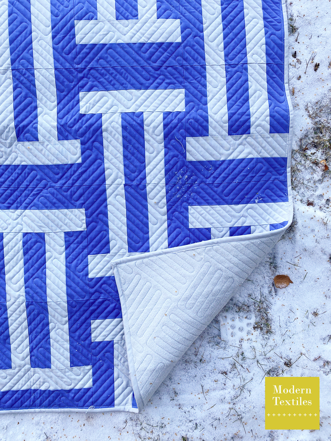 The Cake Weave quilt pattern was inspired structural beams. I made the quilt block to reflect the design element then rotated and happened upon a woven pattern that appeared. Once the blocks are in place they show off a neat weave pattern!