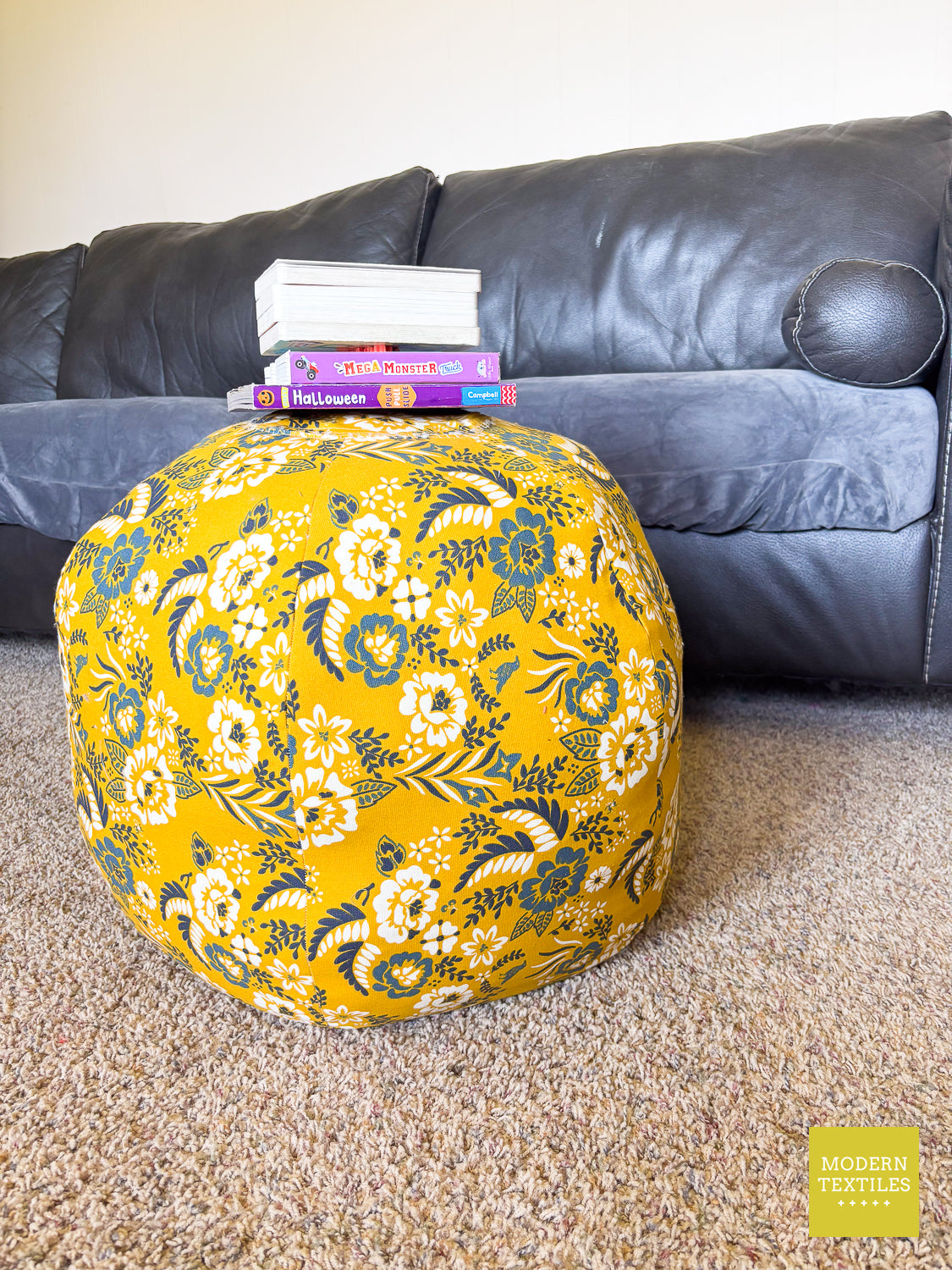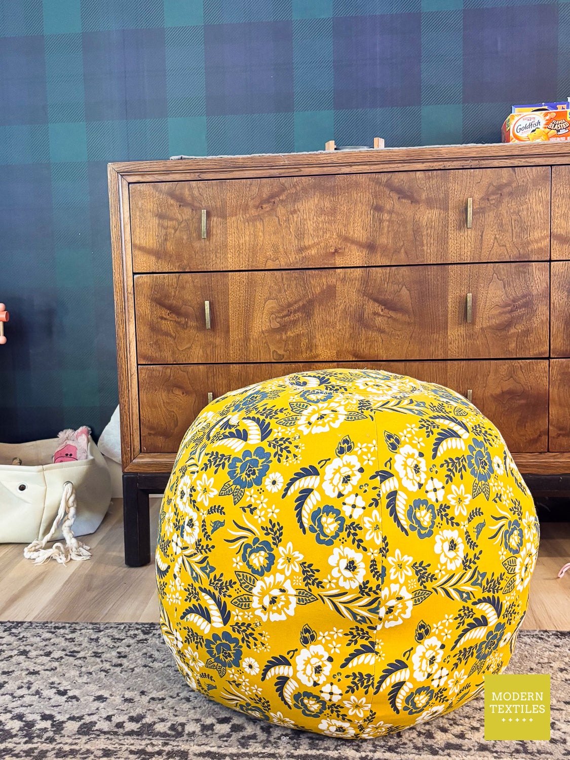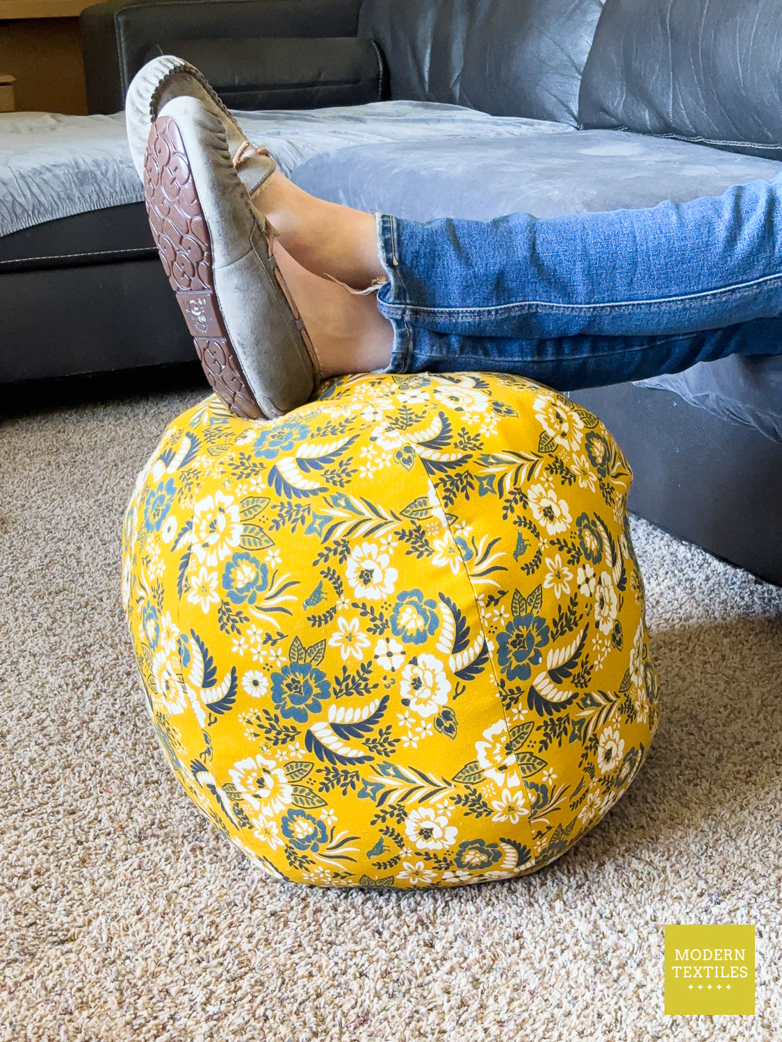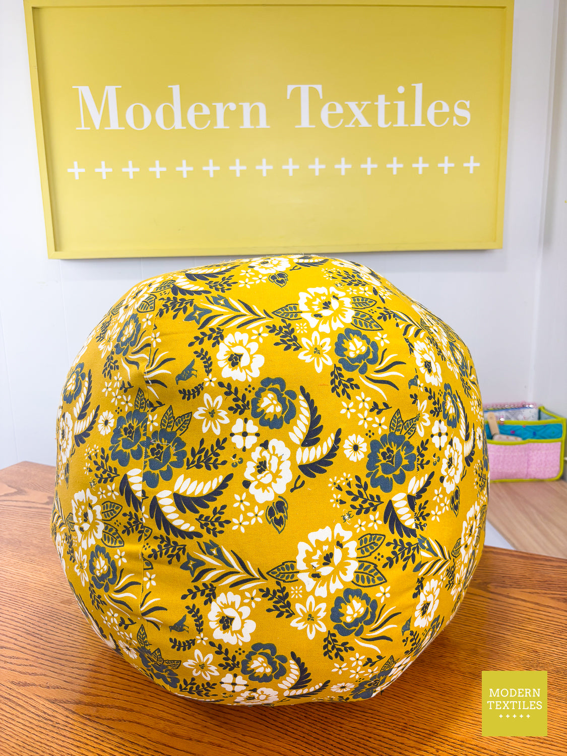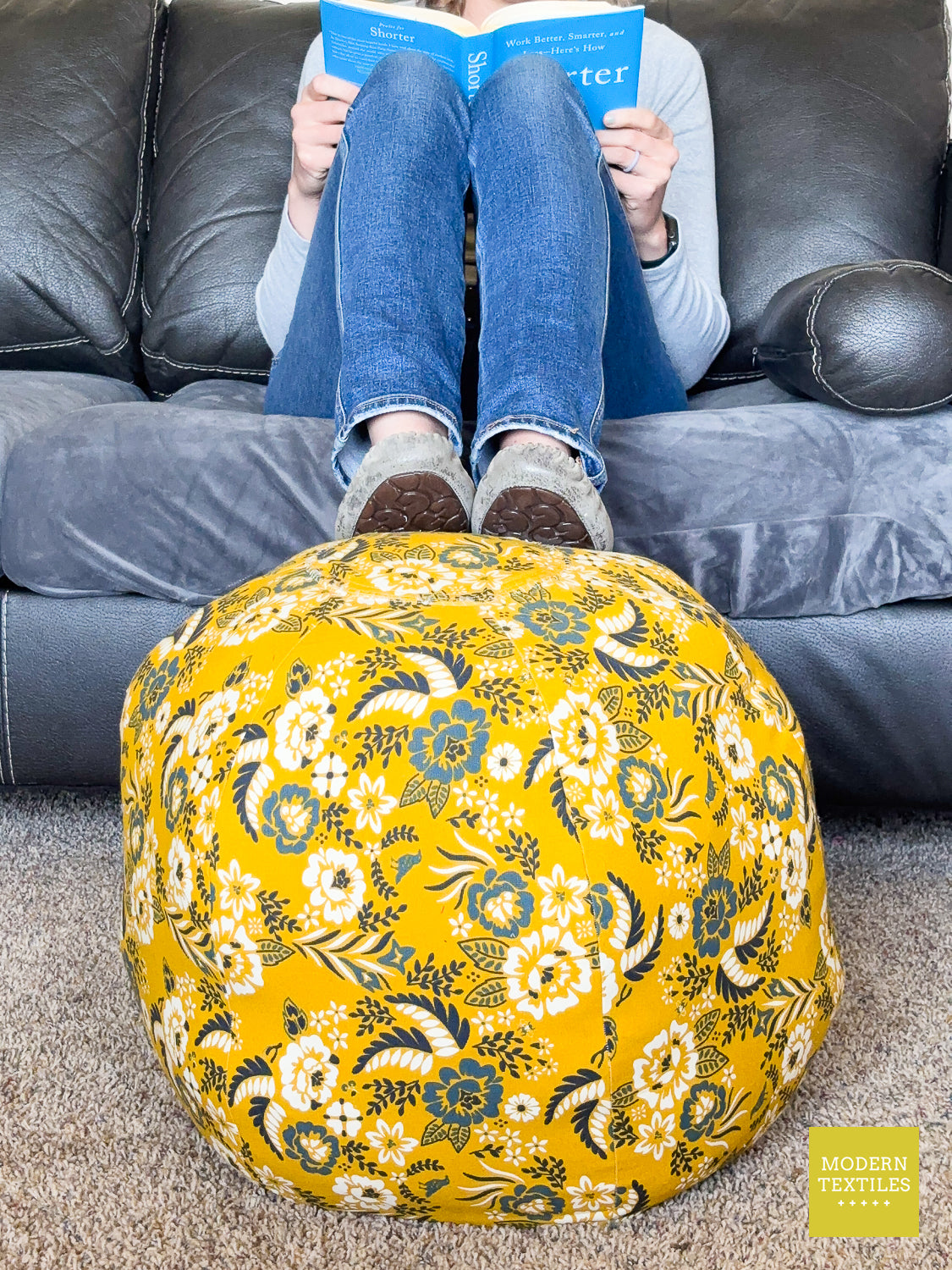We love the versatility of the floor pouf and we know you will too! It's extra seating, an ottoman, and a coffee table all in one. And it's a fun way to add a pop of color and print to any room. Our version, like all the Modern Textiles' patterns, comes from trial and error and lots of math! Which leaves you with the fun part of picking out the fabric and sewing it up!