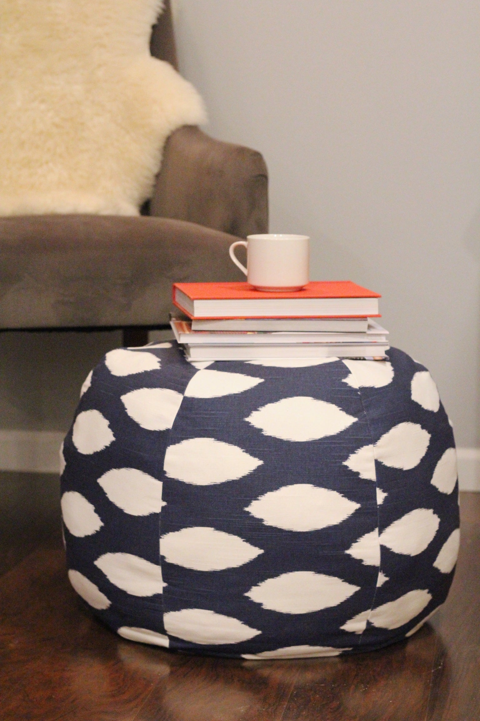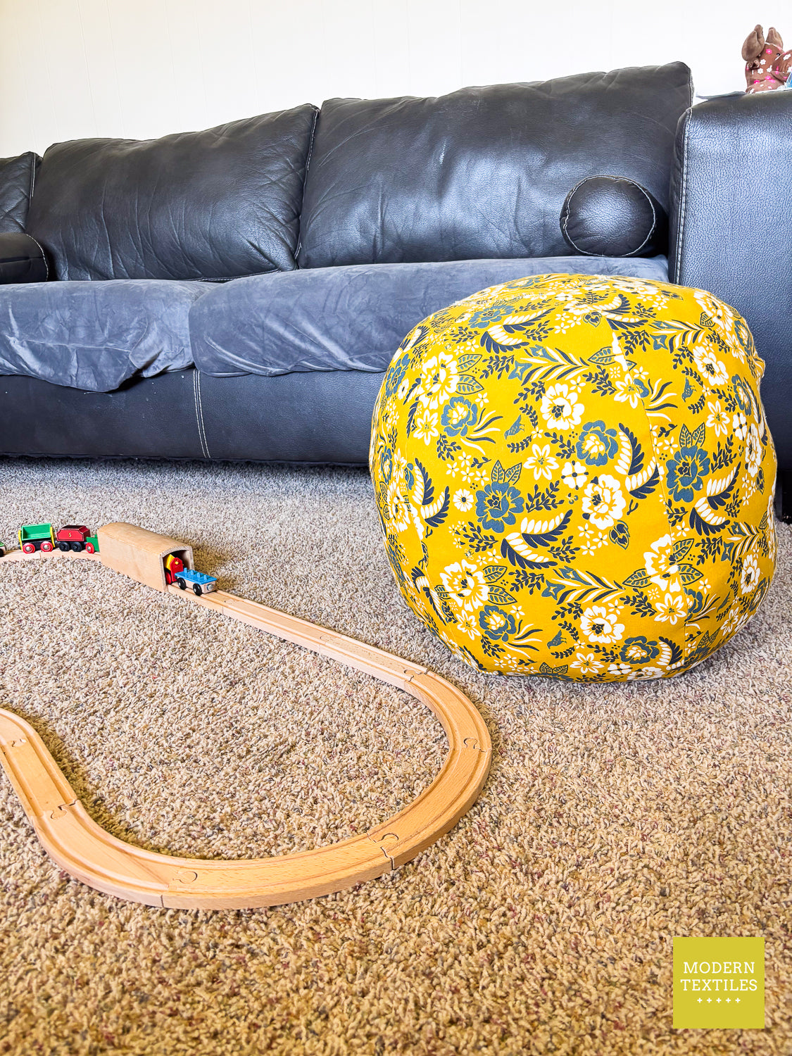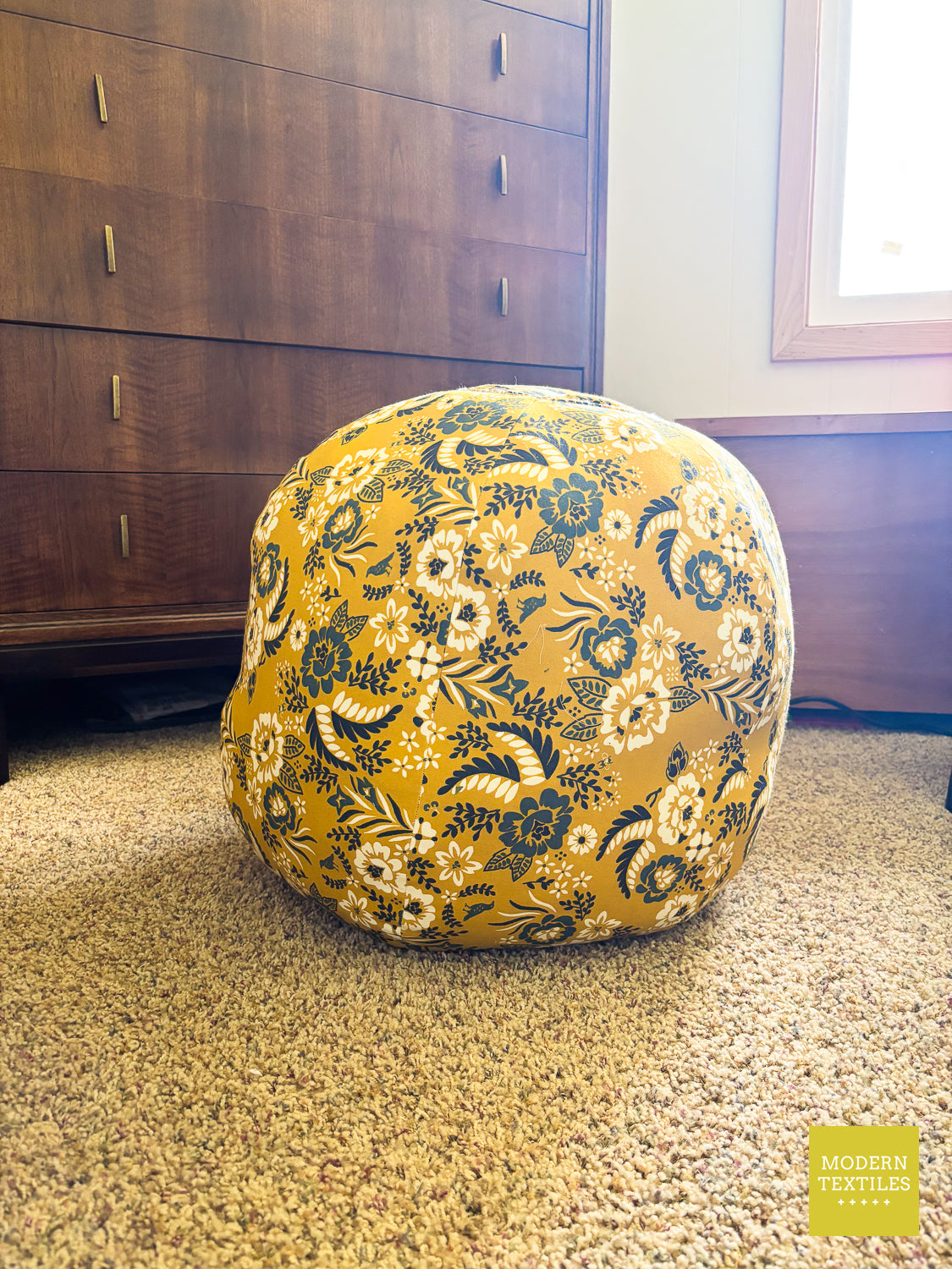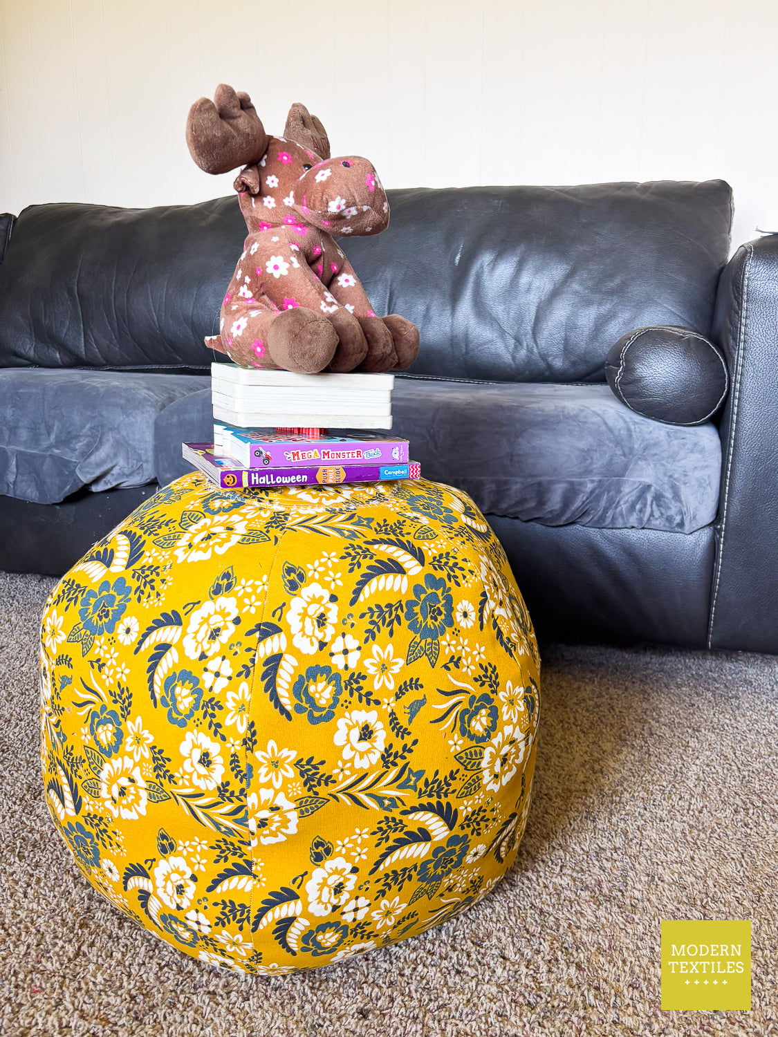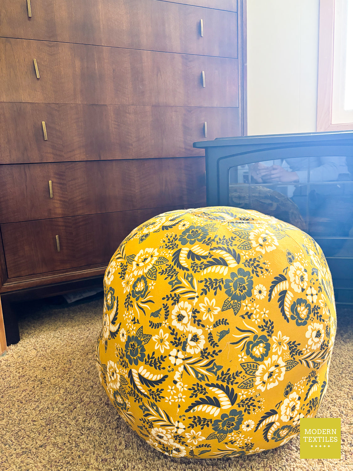 We love the versatility of the floor pouf and we know you will too! It's extra seating, an ottoman, and a coffee table all in one. And it's a fun way to add a pop of color and print to any room. Our version, like all the Modern Textiles' patterns, comes from trial and error and lots of math! Which leaves you with the fun part of picking out the fabric and sewing it up!