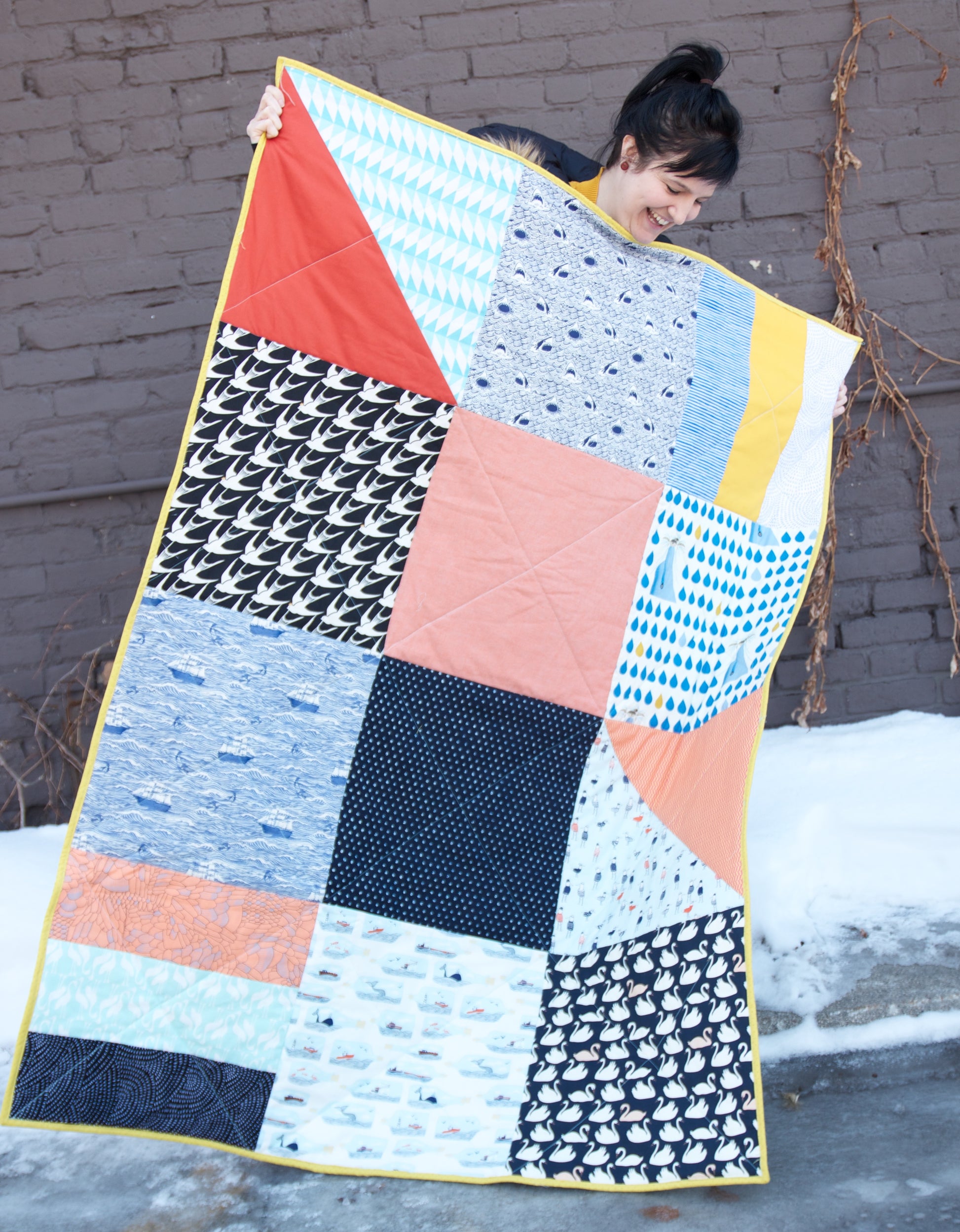 Modern Textiles Quilting 101 Pattern is the perfect place to start for beginners. Pattern contains detailed explanation on how and why of quilting, along with excellent illustrations and diagrams. All the lingo and definitions you need to learn about quilting is included in this awesome quilting 101 pattern!