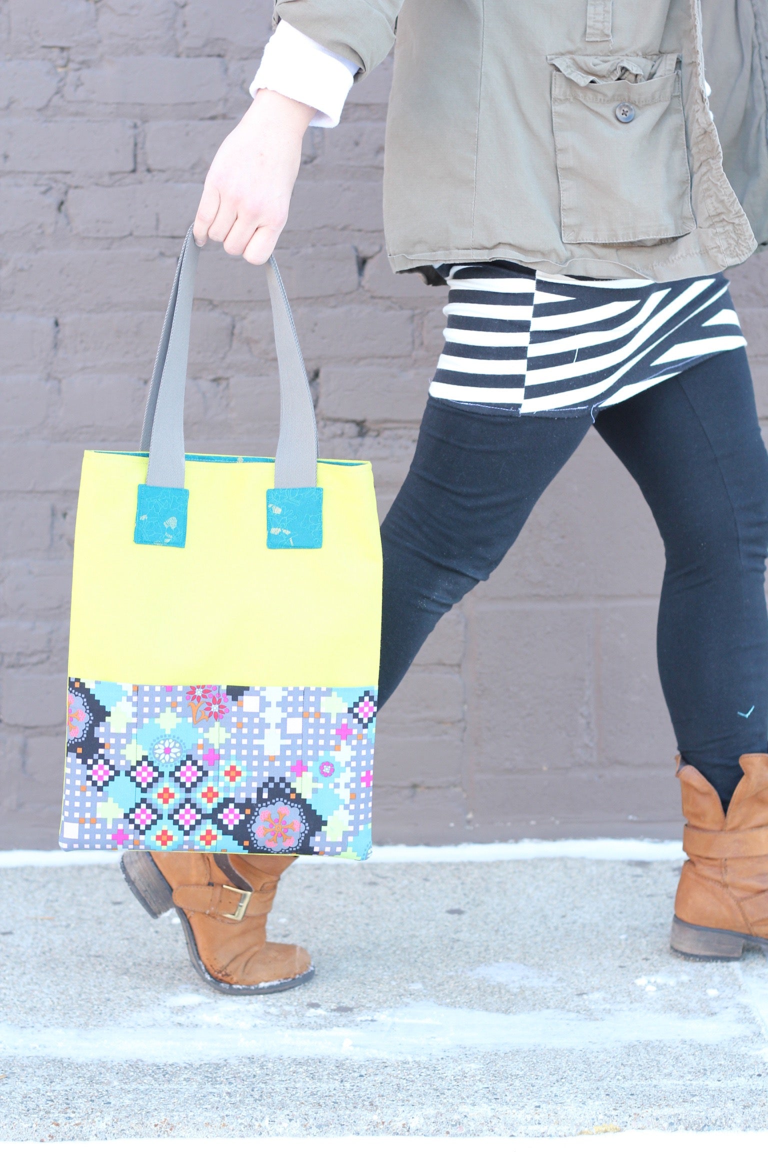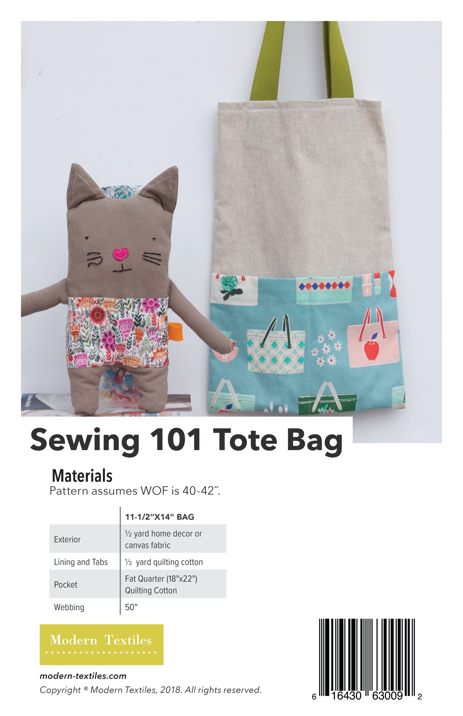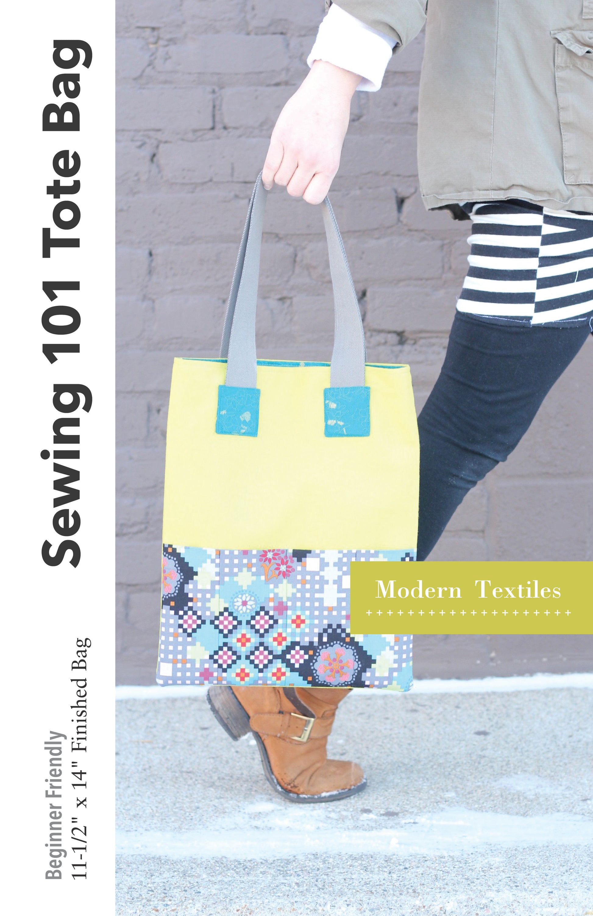 Modern Textiles Sewing 101 Tote Bag Pattern is the perfect place to start for beginners. Pattern contains detailed explanation on how and why of sewing, along with excellent illustrations and diagrams. All the lingo and definitions you need to learn about sewing is included in this awesome Sewing 101 Tote Bag pattern!